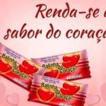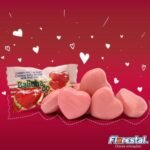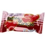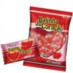 Bala dura sabor morango formato de coração.