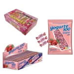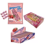 Descrição: Yogurte 100 Dori é tradicional e deliciosos doces mastigáveis com sabor de iogurte de morango. Perfeitos para todos os tipos de festas.